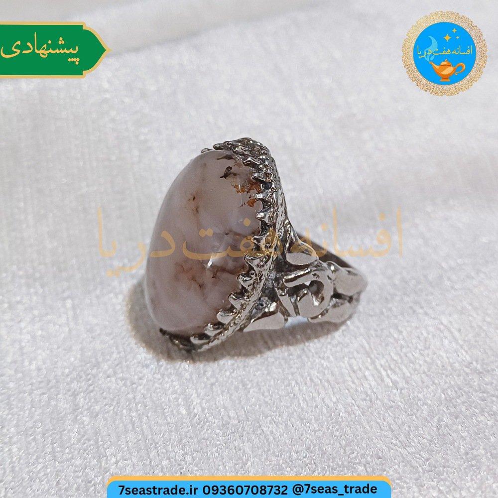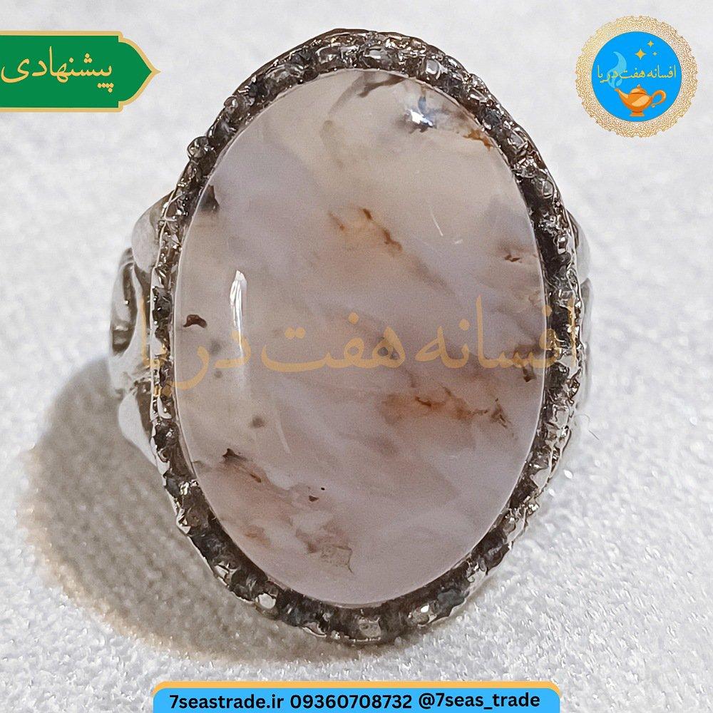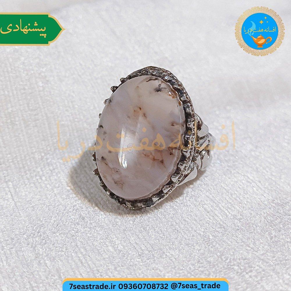 انگشتر نقره مردانه نگین قیق فاخر سفید مشجر خزهای کاملاً شفاف