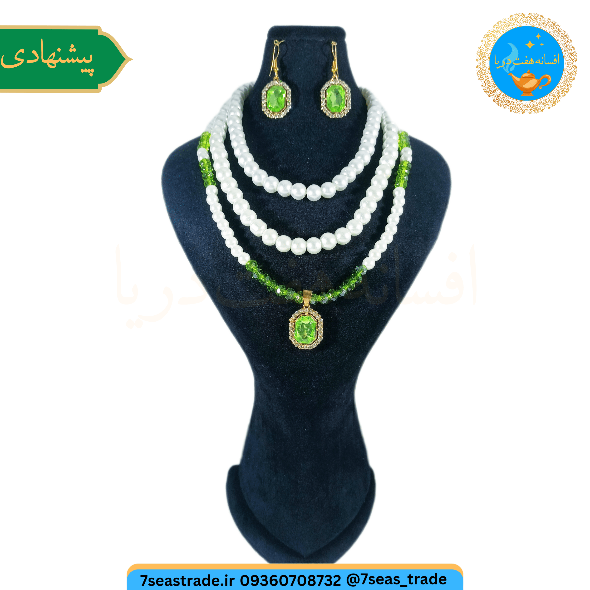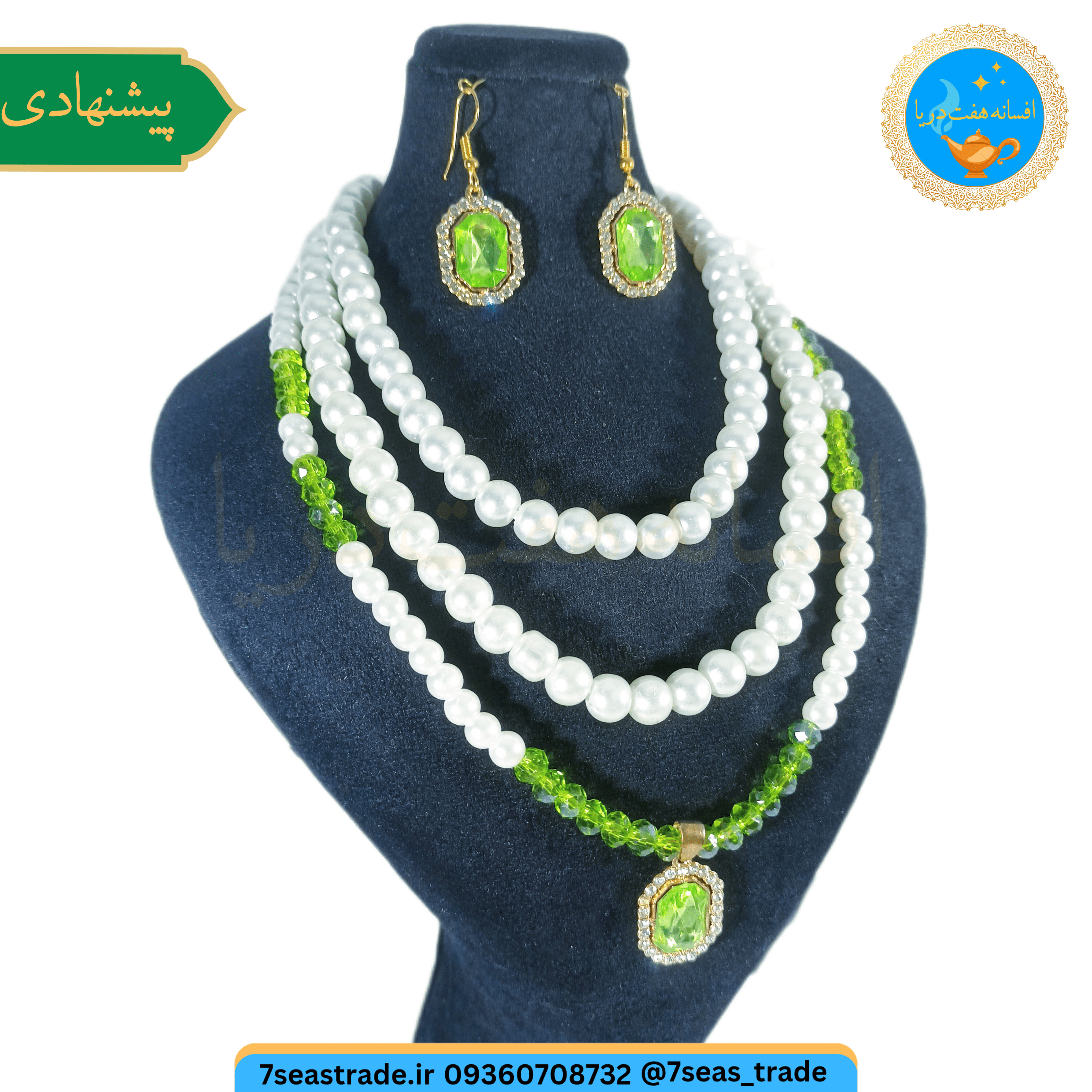 ست فاخر زنانه مروارید و کریستال سبز مدل زمرد