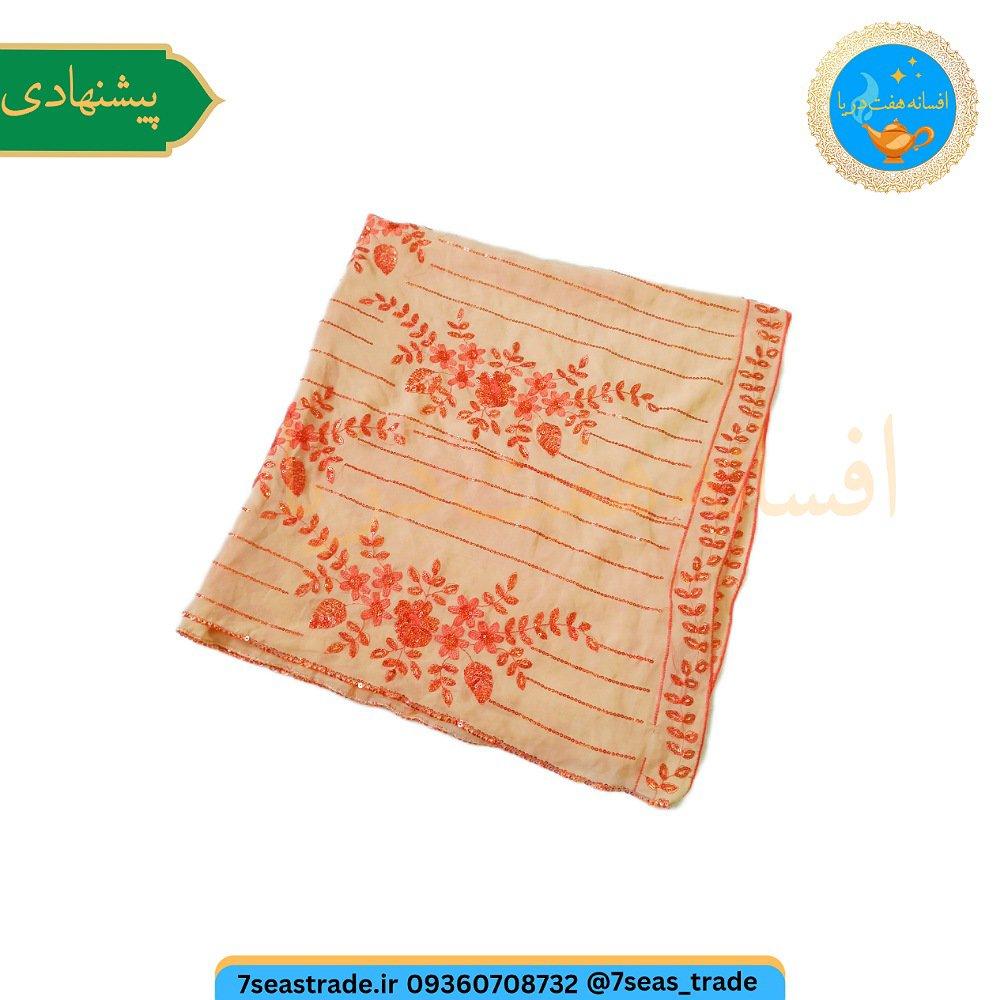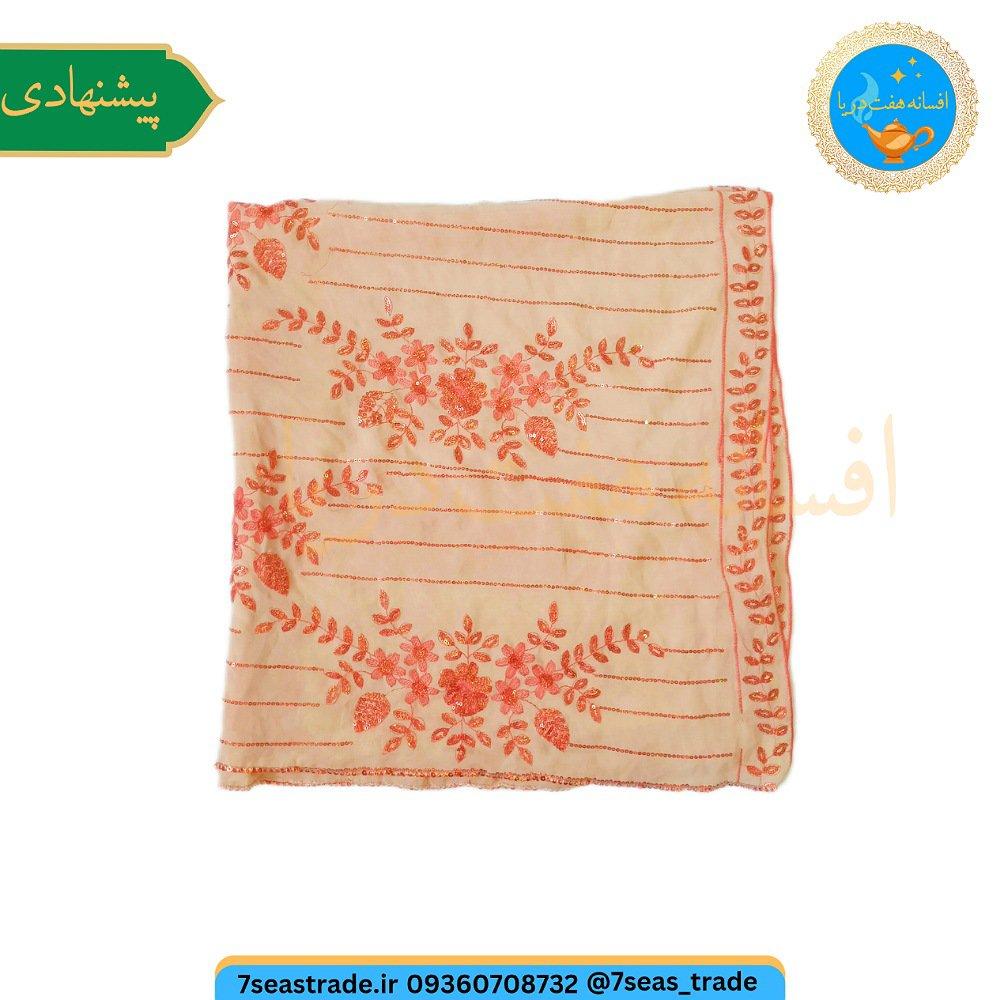 شال هندی کرمی، شال رومیزی هندی، شال گلدوزی و پولکدوزی هندی، شال تزئینی هندی، شال زنانه هندی، شال استوک وارداتی، رومیزی هندی گلدوزی، شال نارنجی کرمی هندی، پارچه هندی خاص، شال چندمنظوره هندی