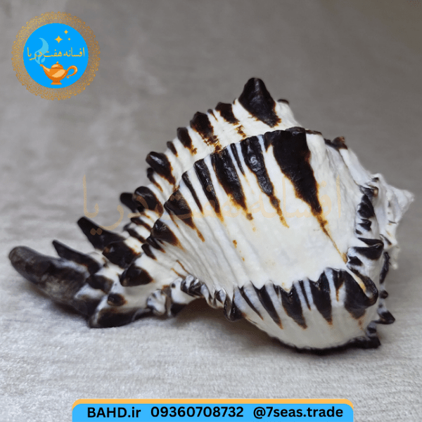 این محصول یک صدف اقیانوس دکوری طبیعی بزرگ با رنگ سفید و خطوط سیاه است که به دلیل ظاهر خاص و طبیعی خود جلوهای چشمگیر به دکوراسیون میبخشد. ترکیب رنگ سفید درخشان با خطوط تیره، طرحی منحصربهفرد ایجاد کرده و این صدف را به یک قطعه دکوری خاص و ارزشمند تبدیل کرده است.