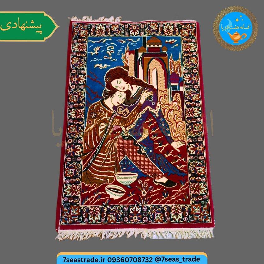 فرش دستباف ذرع و نیم ۱,۵ متری طرح لیلی مجنون بسیار زیبا بافت اصفهان