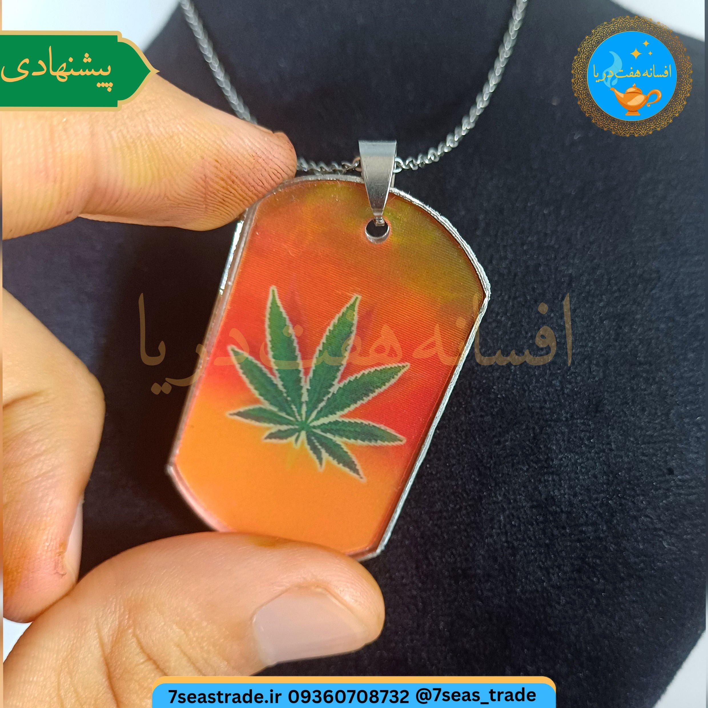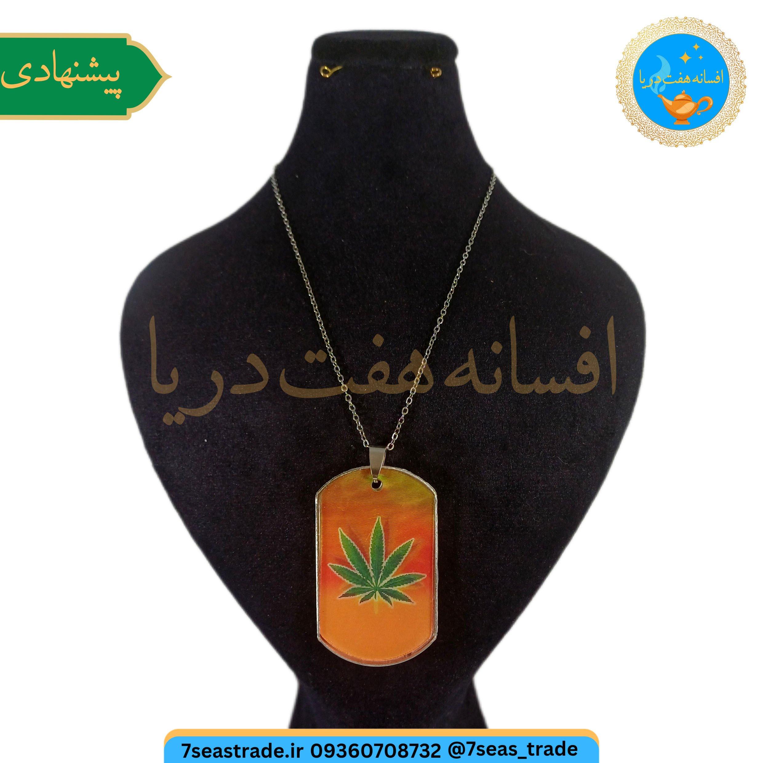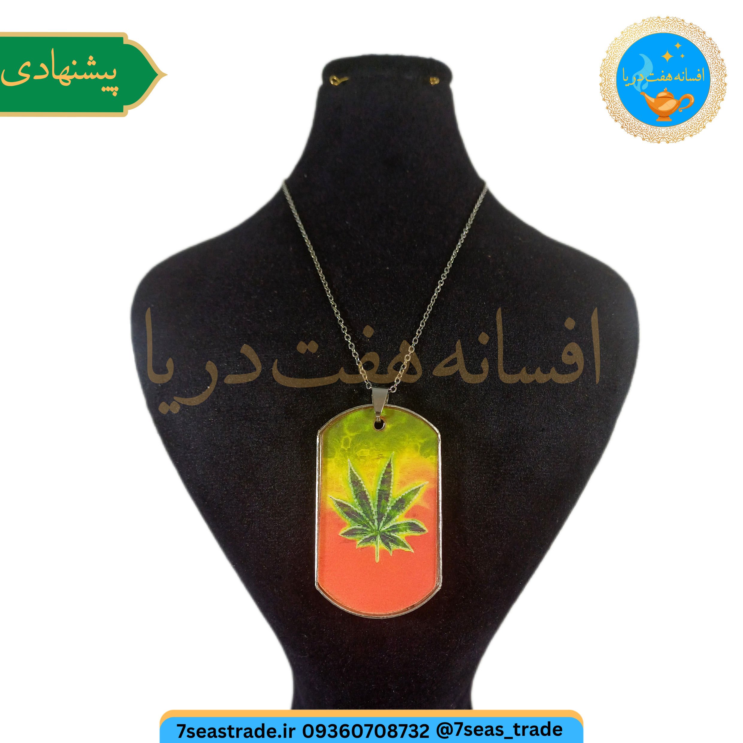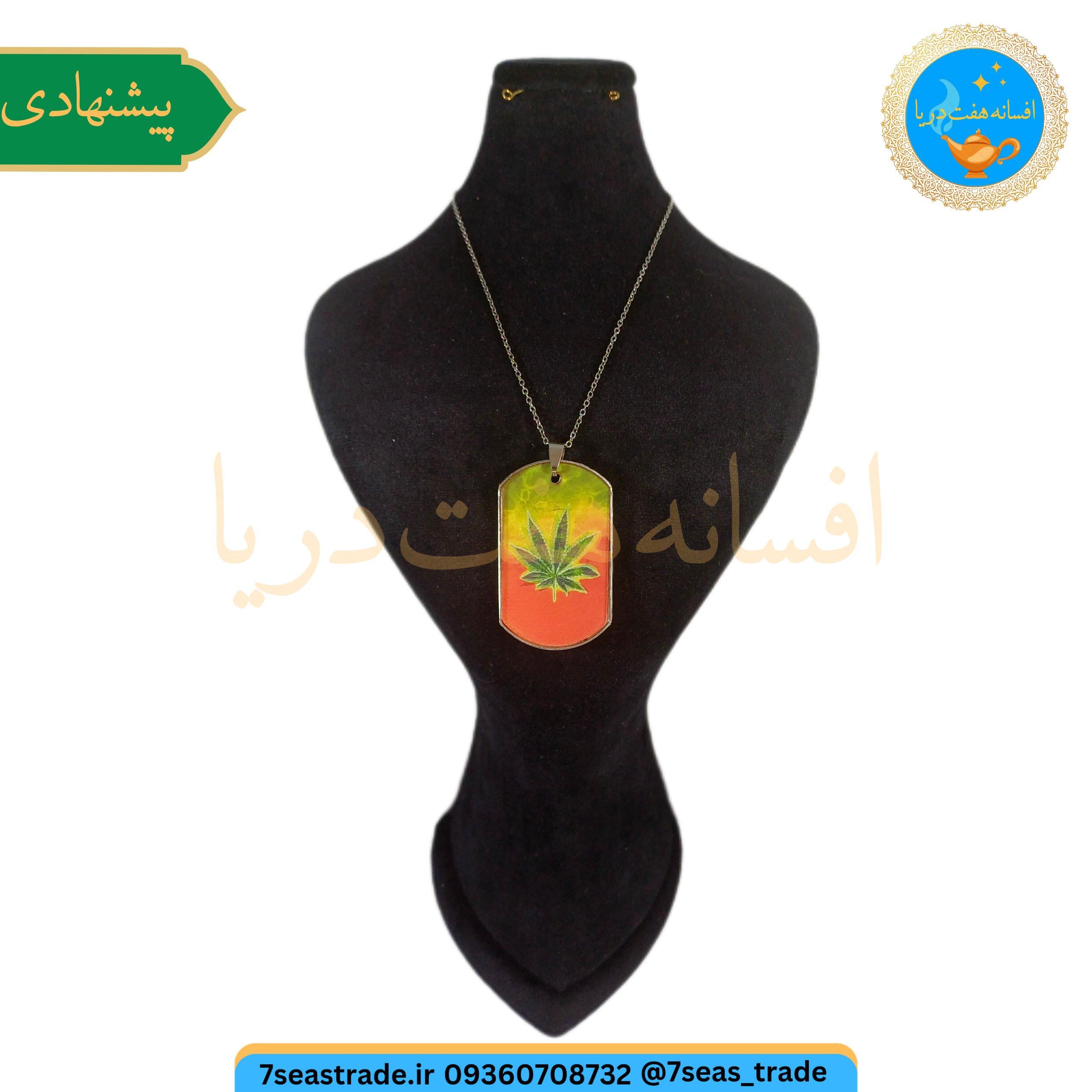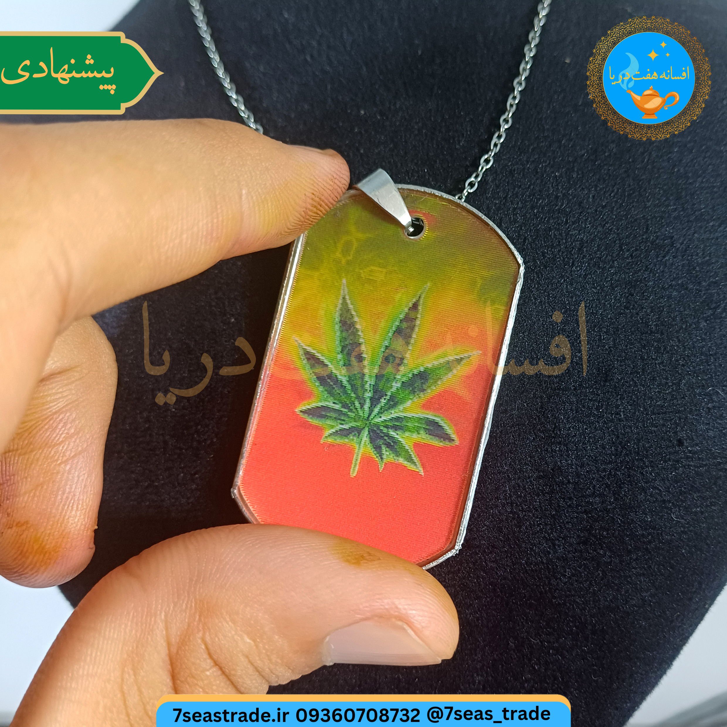 گردبند فلزی نقره ای مدال پلاک تغییر شکل دهنده دو صورته طرح زمینه نارنجی و پرچم کهنه