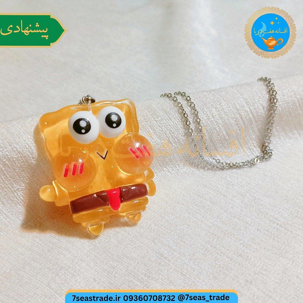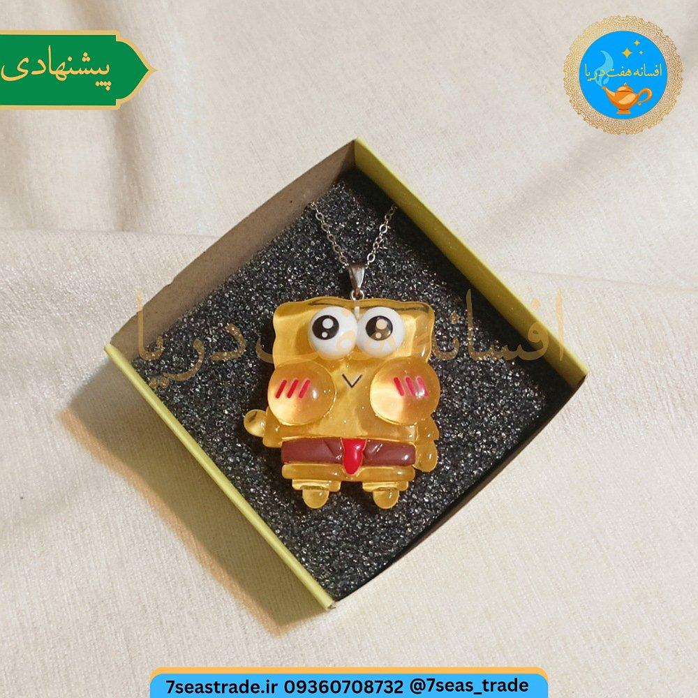 گردنبند فلزی طلایی مدال رزینی کار دست شمایل باب اسفنجی سایز بزرگ
