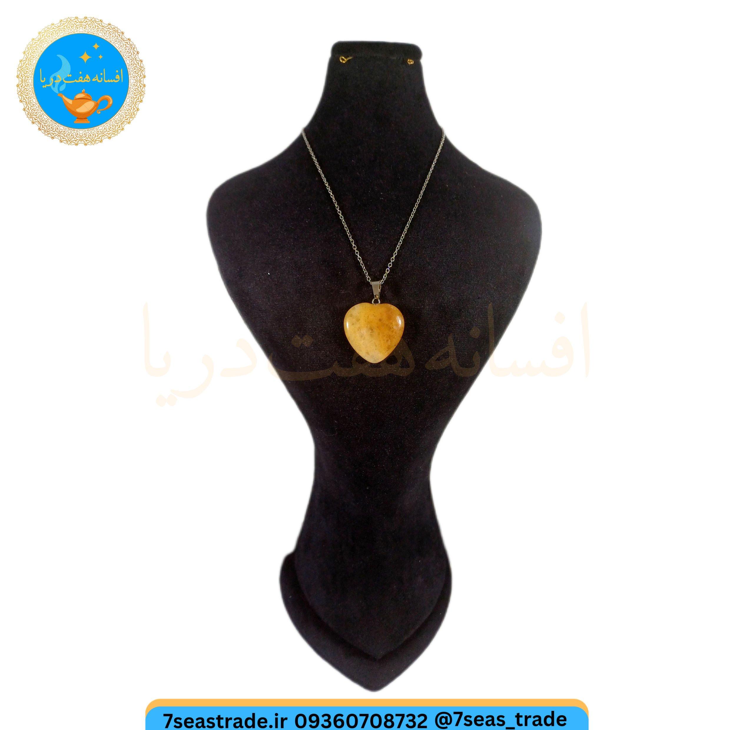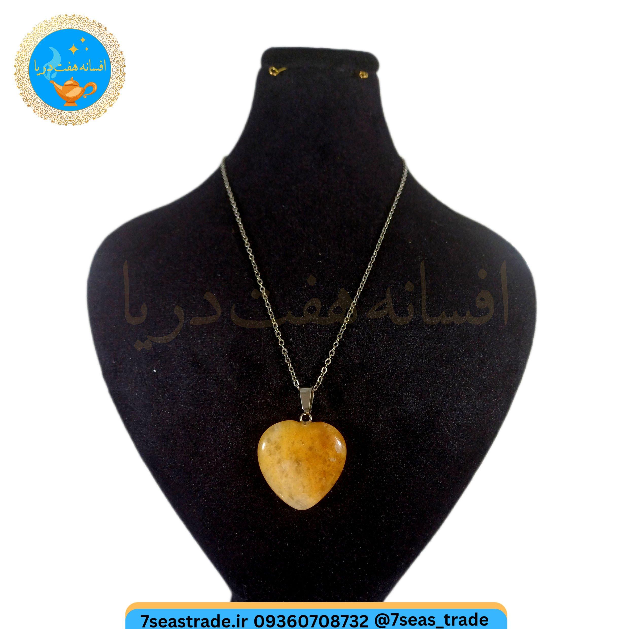 گردنبند فلزی نقره ای مدال سنگ سیترین اصل طبیعی تراش قلب سایز بزرگ