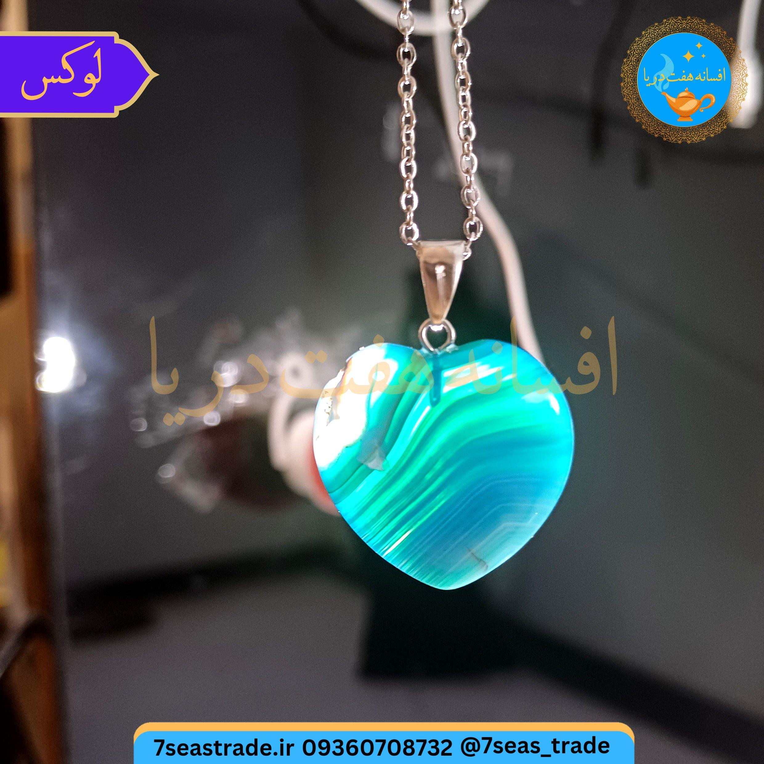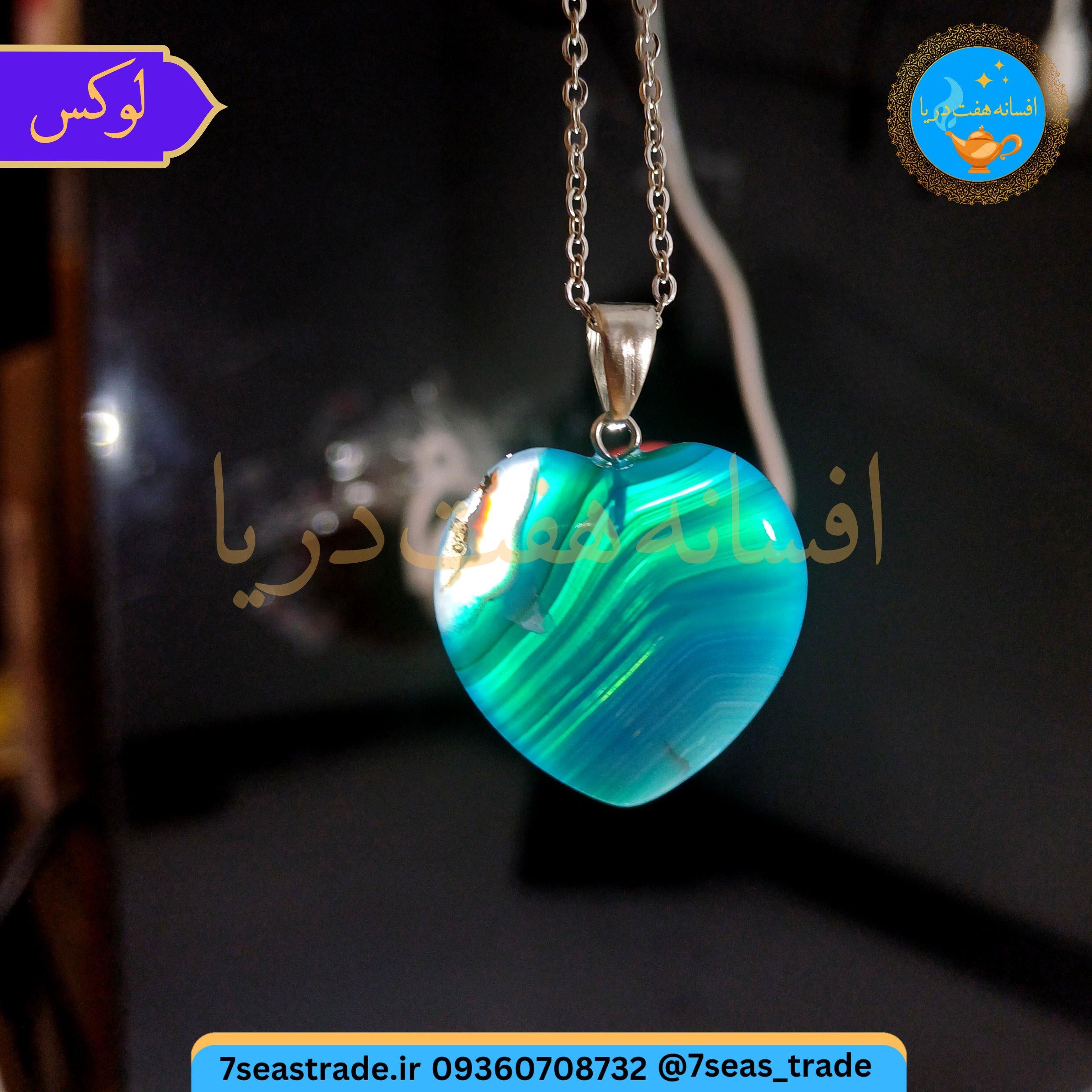 گردنبند فلزی نقره‌ای، مدال سنگ عقیق آبی آسمانی، عقیق آبی لیزری، عقیق طبیعی کمیاب، تراش قلب عقیق، گردنبند سایز بزرگ، گردنبند خاص، زیورآلات دستساز، اکسسوری سنگ طبیعی، خرید گردنبند عقیق آبی، گردنبند زنانه مردانه، گردنبند لوکس، گردنبند انرژی‌بخش، هدیه خاص، زیورآلات استایلیش، گردنبند کمیاب
