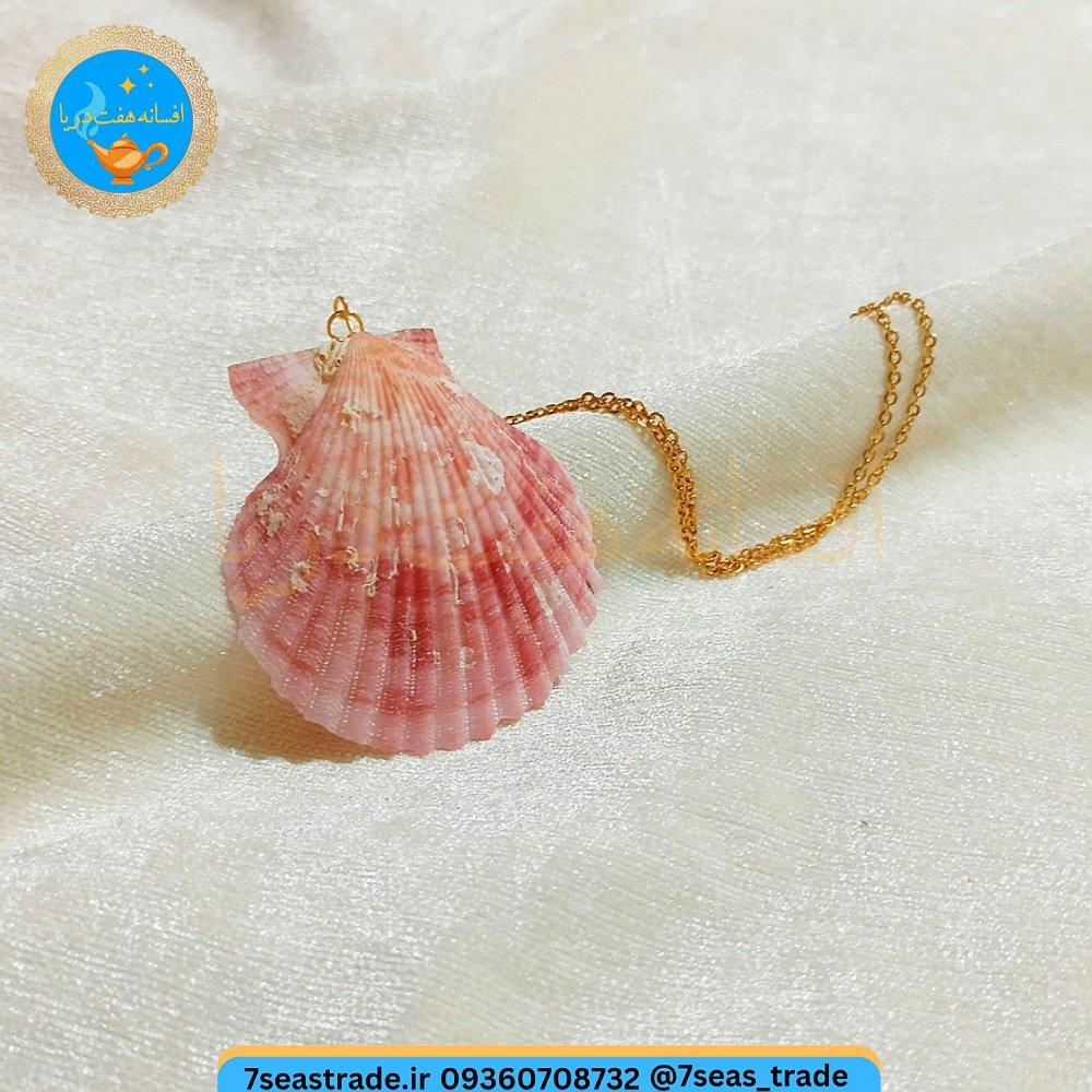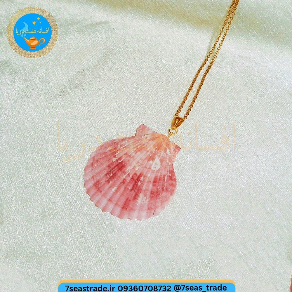 گردنبند فلزی طلایی مدال صدف رنگ صورتی قهوه ای کبود سایز بزرگ