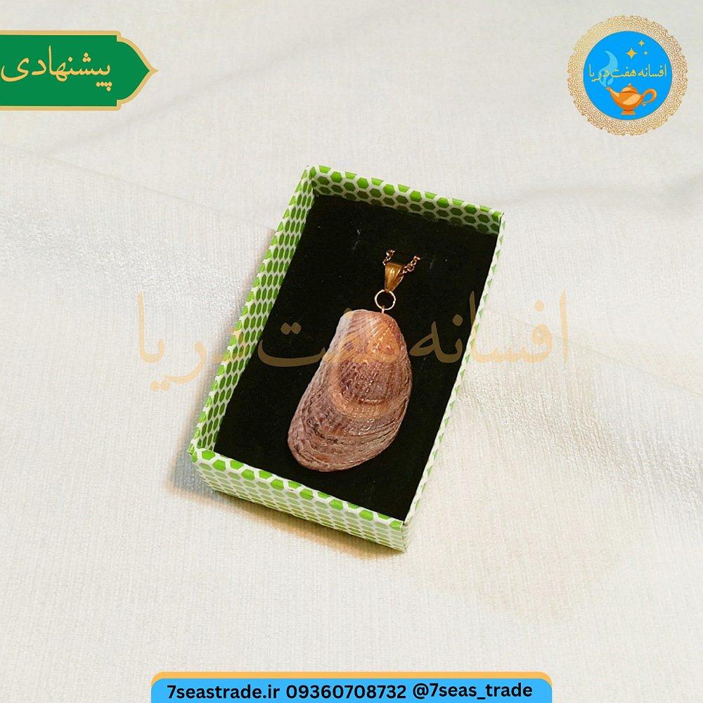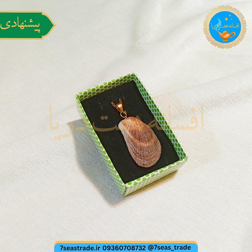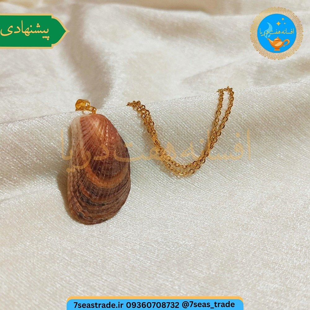 گردنبند فلزی طلایی مدال صدف طبیعی دریا کشیده رنگ قهوه ای صنایع دستی بندر انزلی
