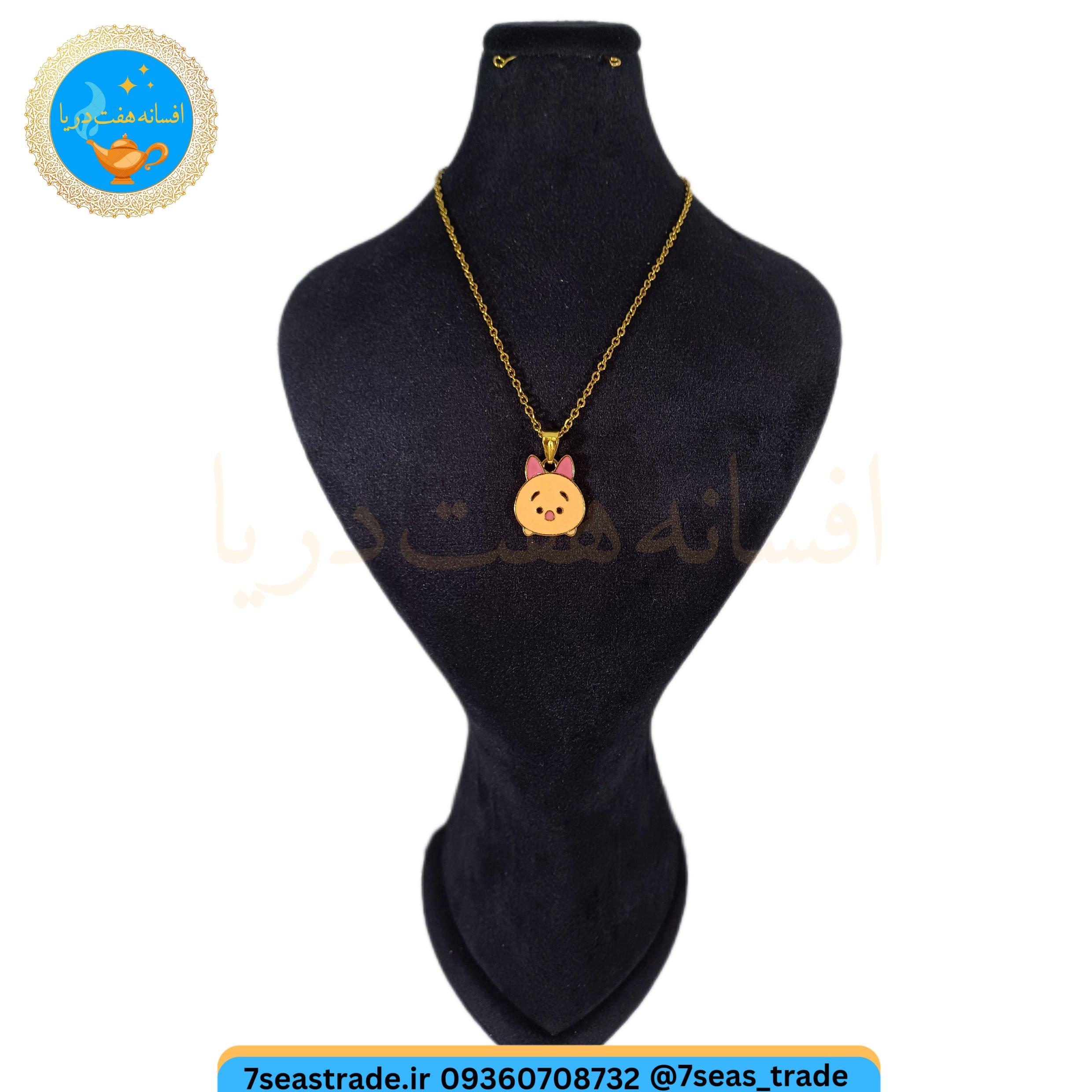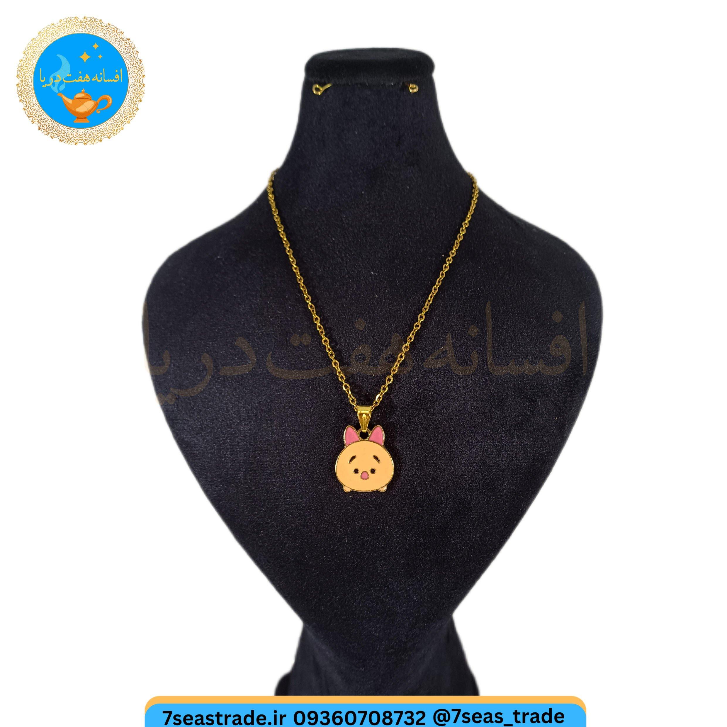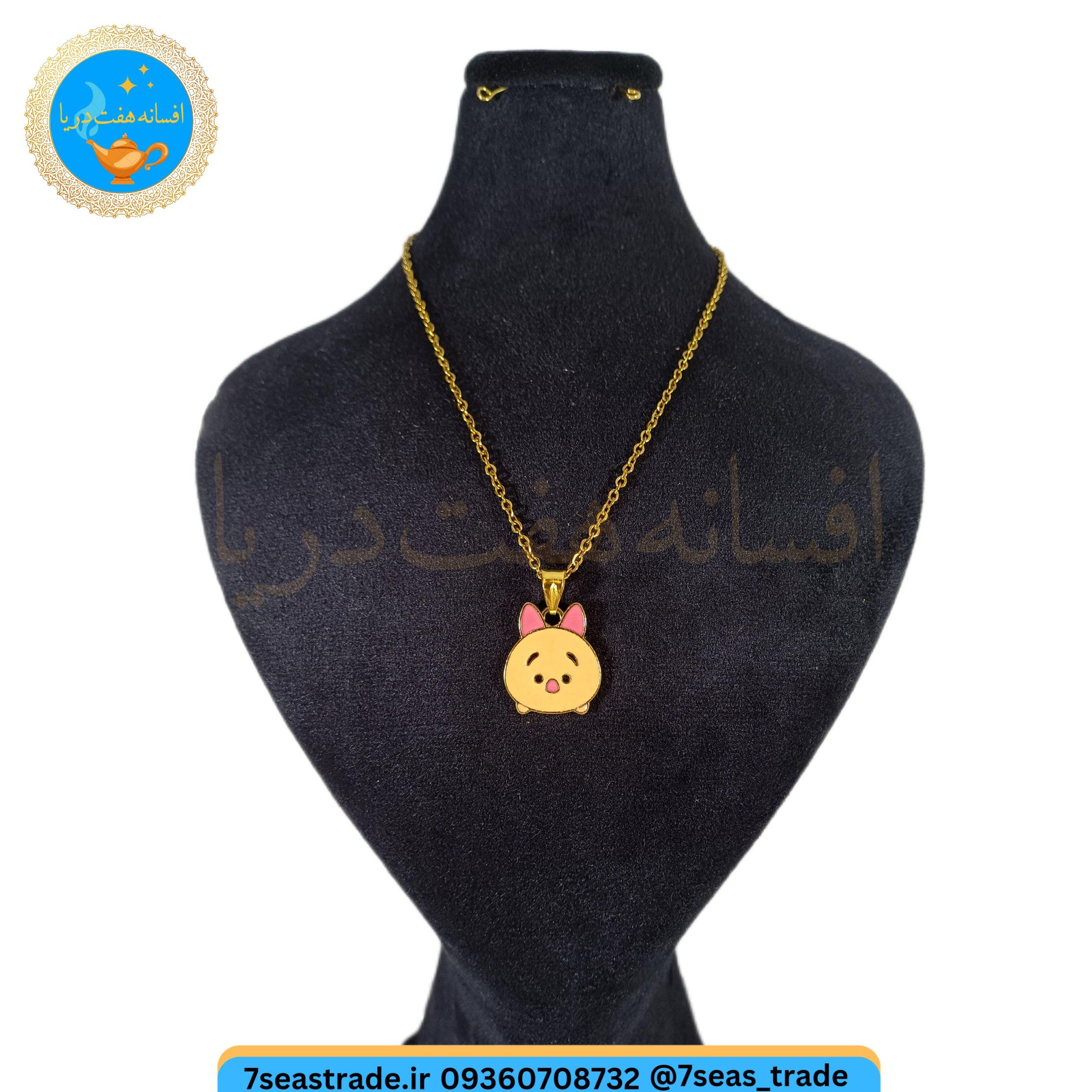 گردنبند فلزی طلایی مدال فلزی رنگی مدل خوک گلبهی ناز