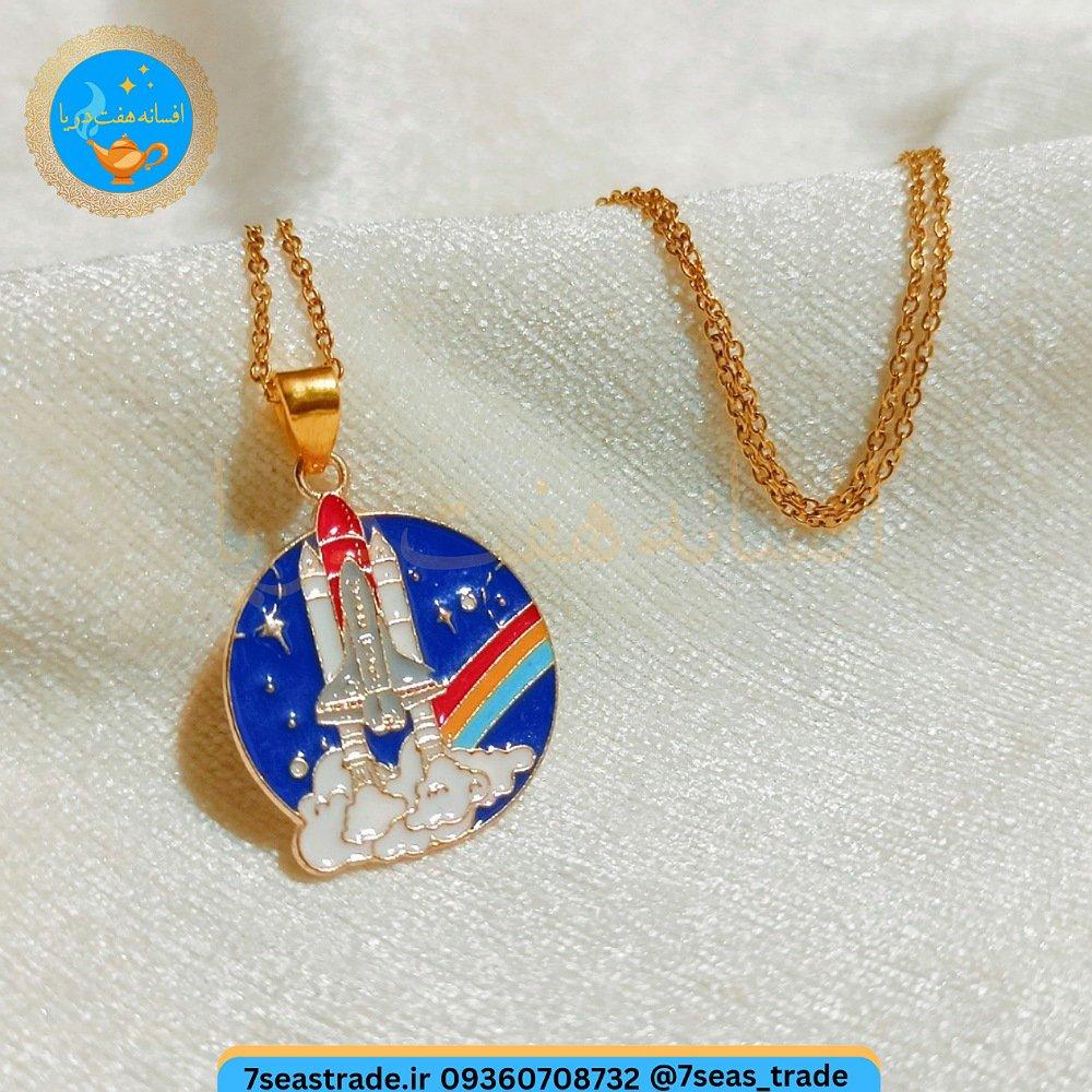 گردنبند فلزی طلایی مدال فلزی رنگی مدل شاتل