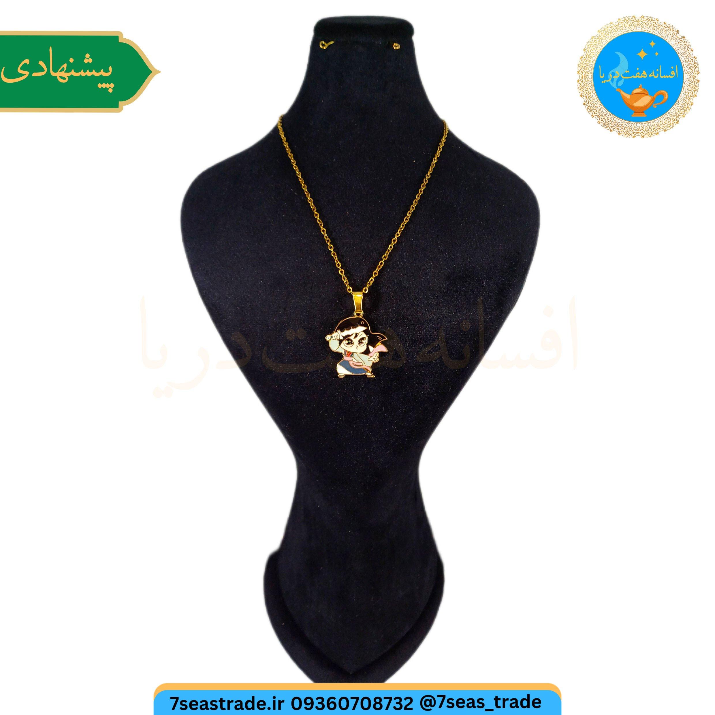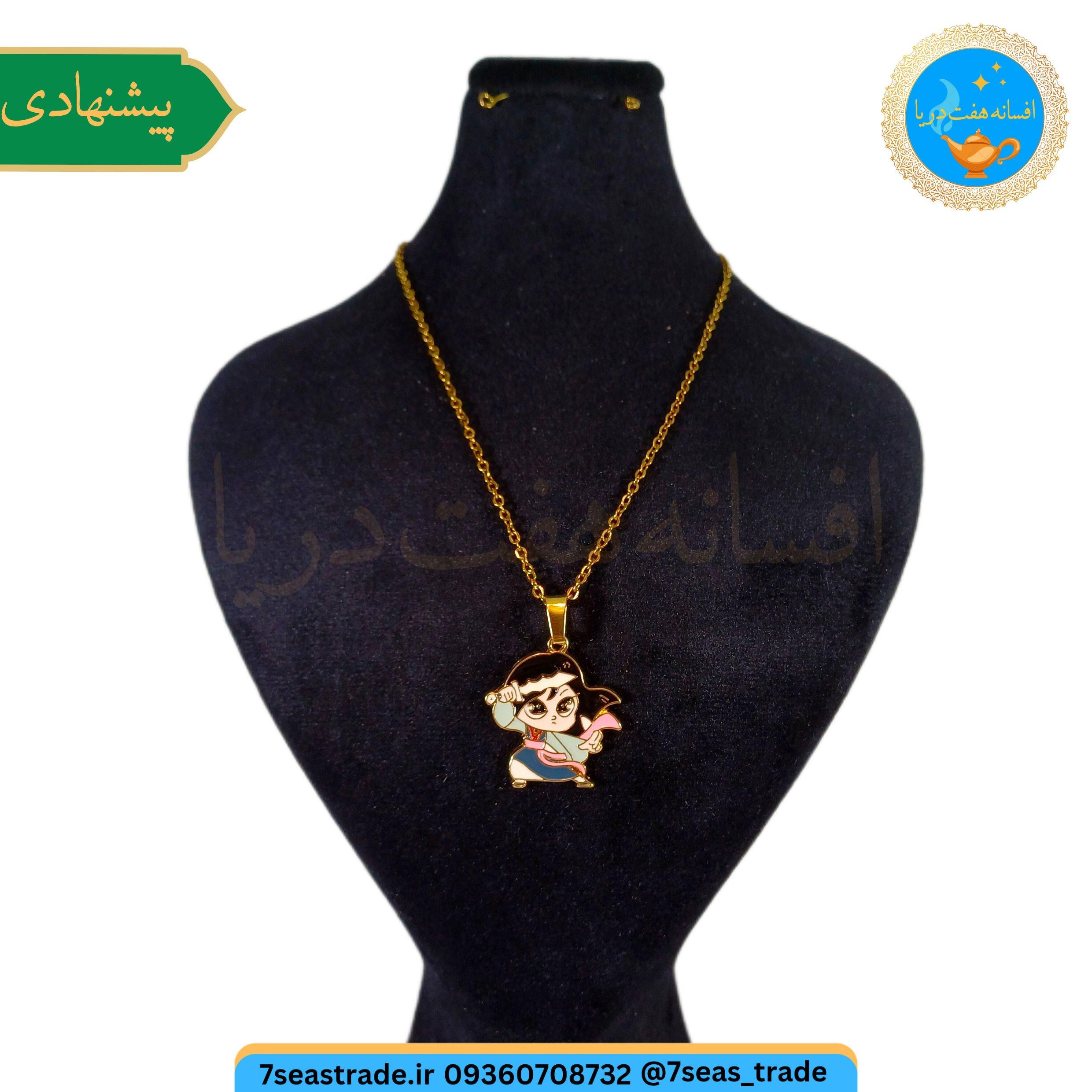 گردنبند فلزی طلایی مدال فلزی رنگی مدل دختر کارانه کار