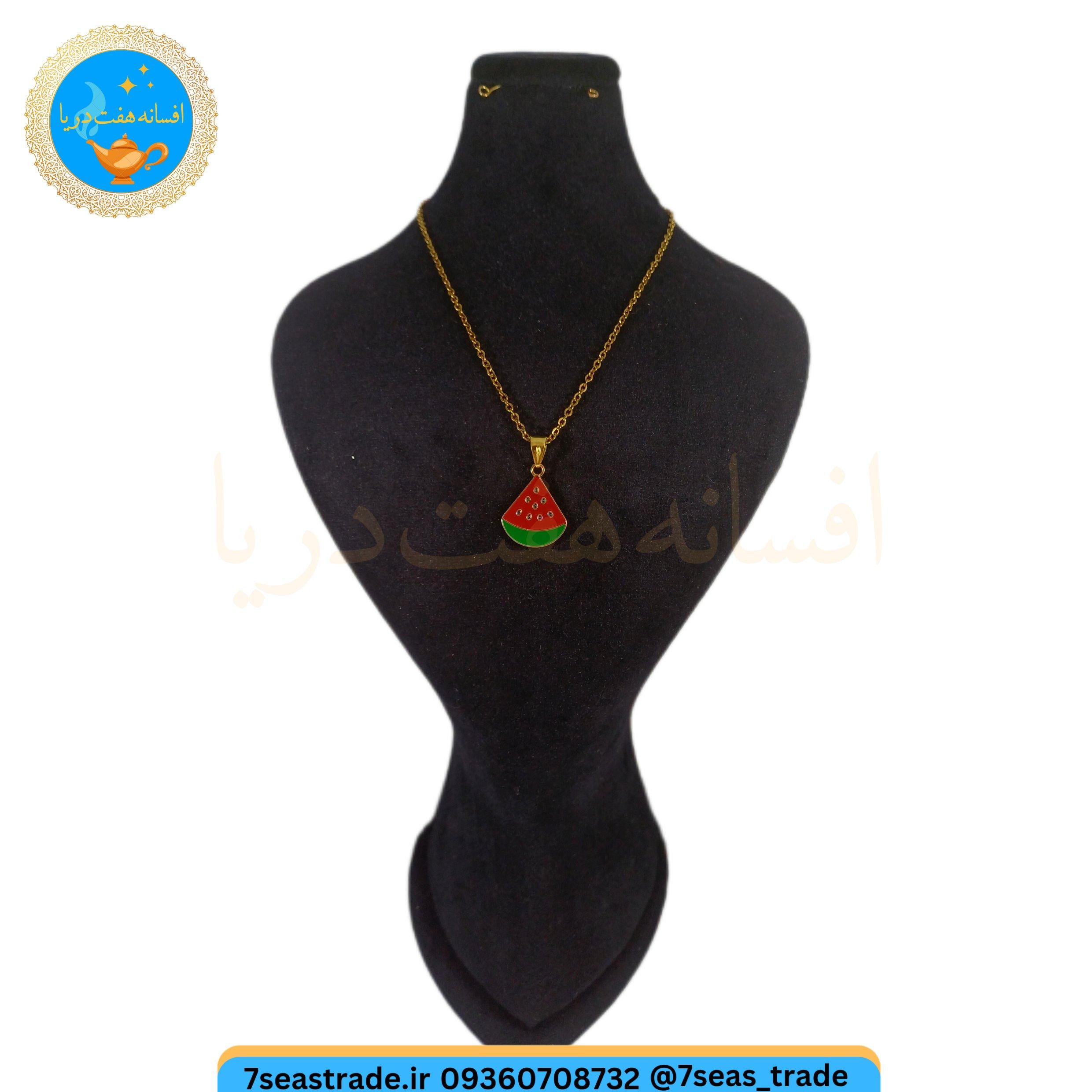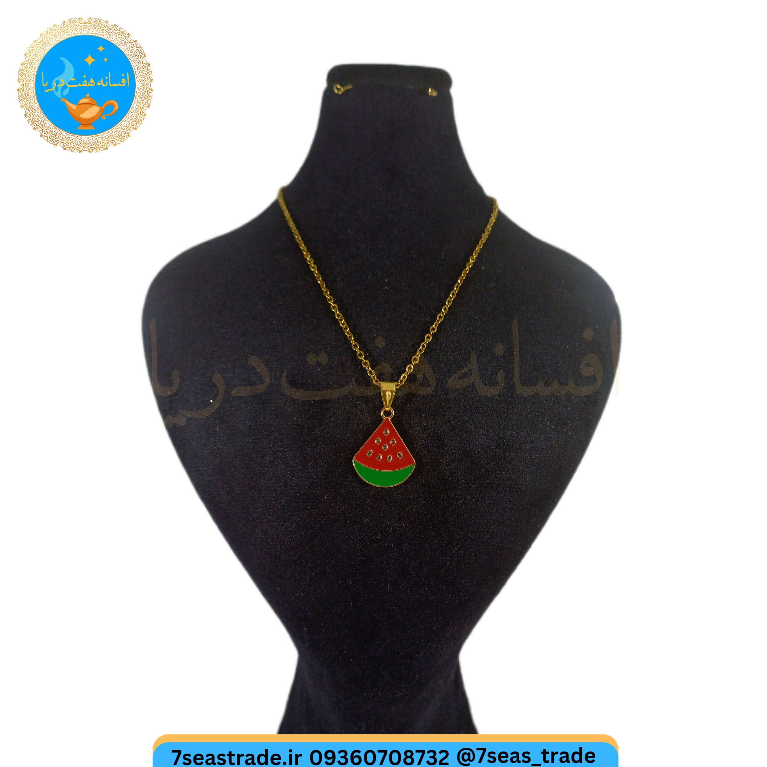 گردنبند فلزی طلایی مدال فلزی رنگی یلدایی مدل قاچ هندوانه
