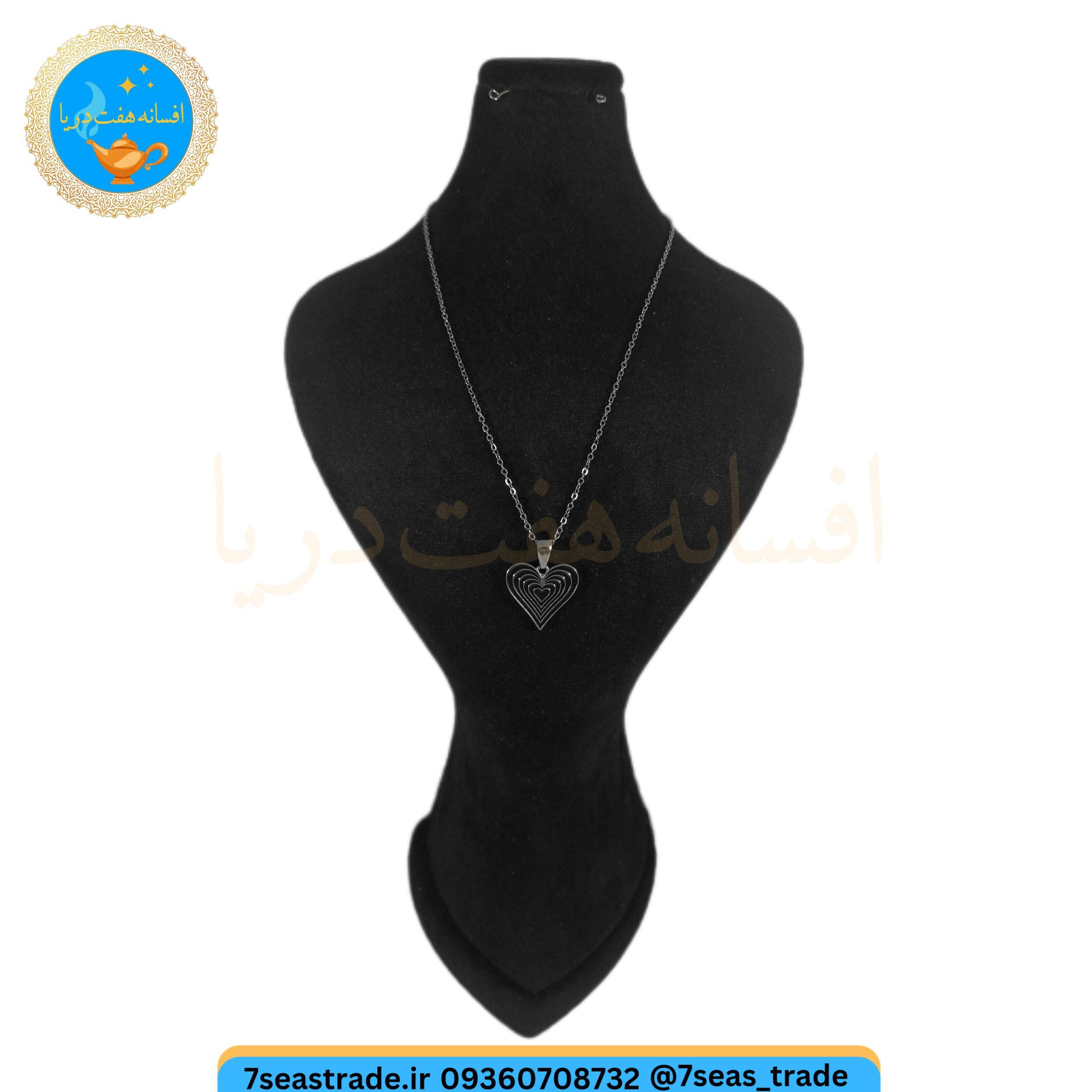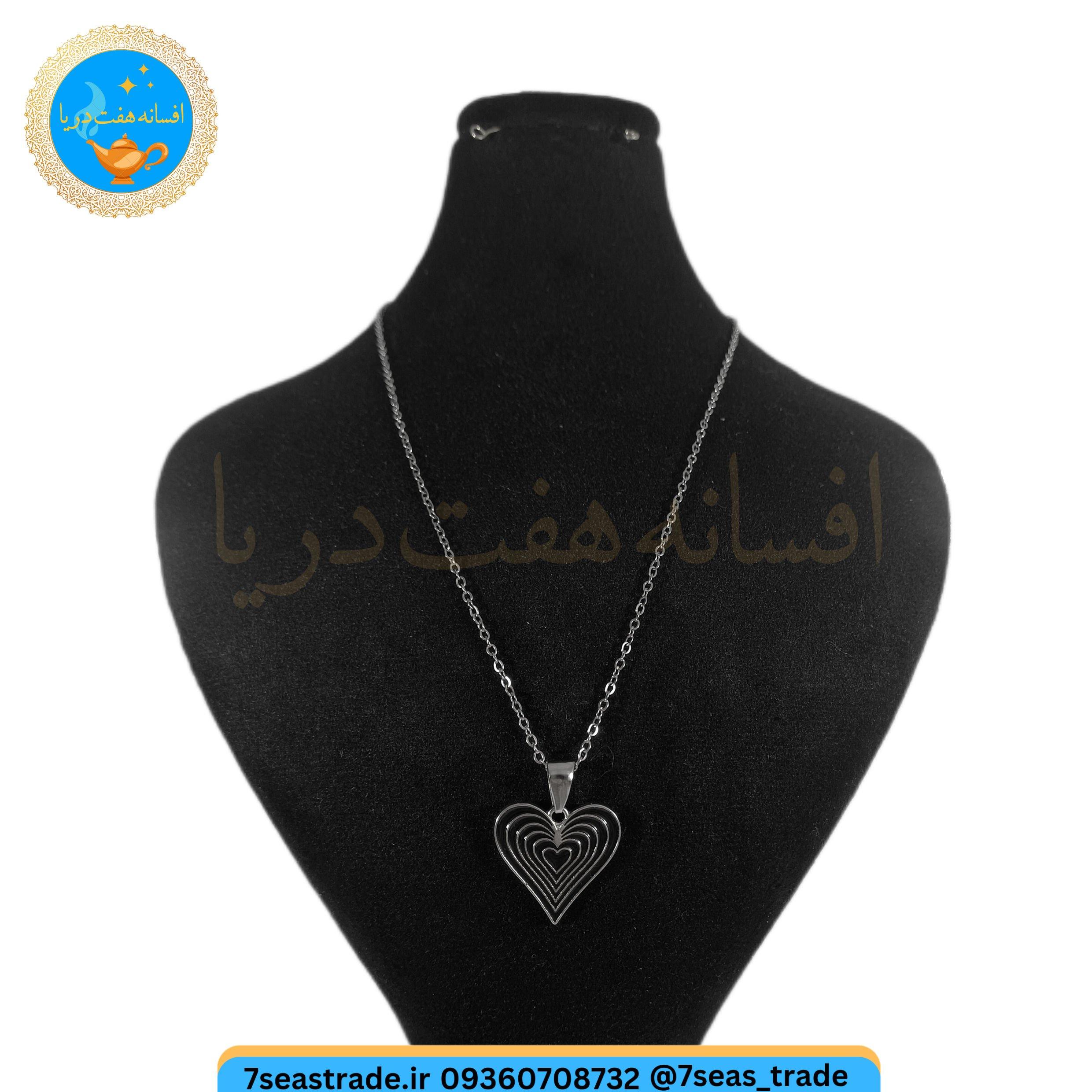 گردنبند فلزی نقره ای مدال استیل طرح قلب بی انتها