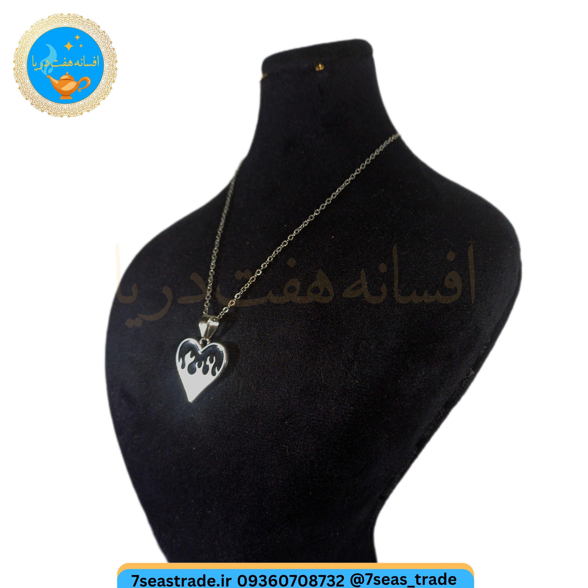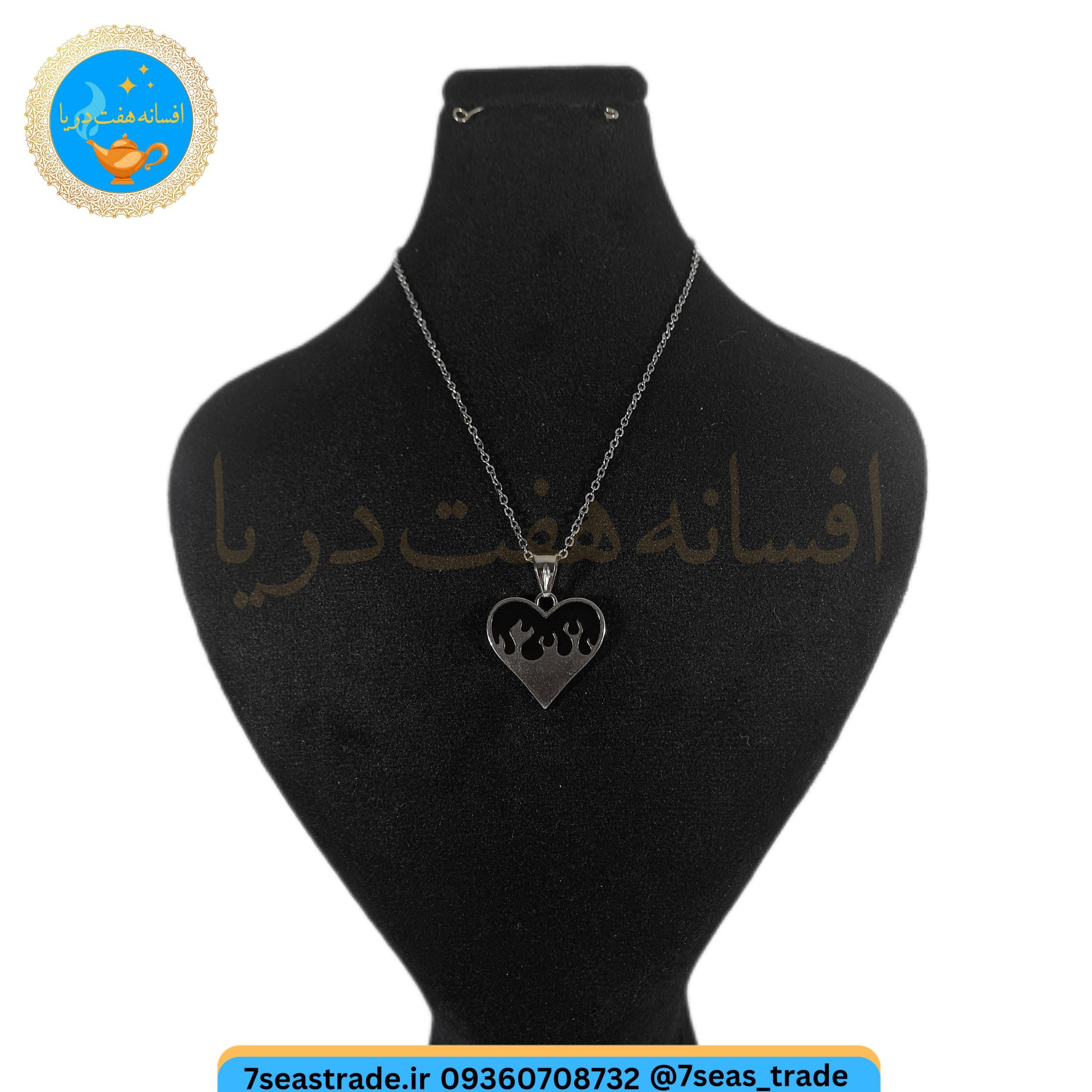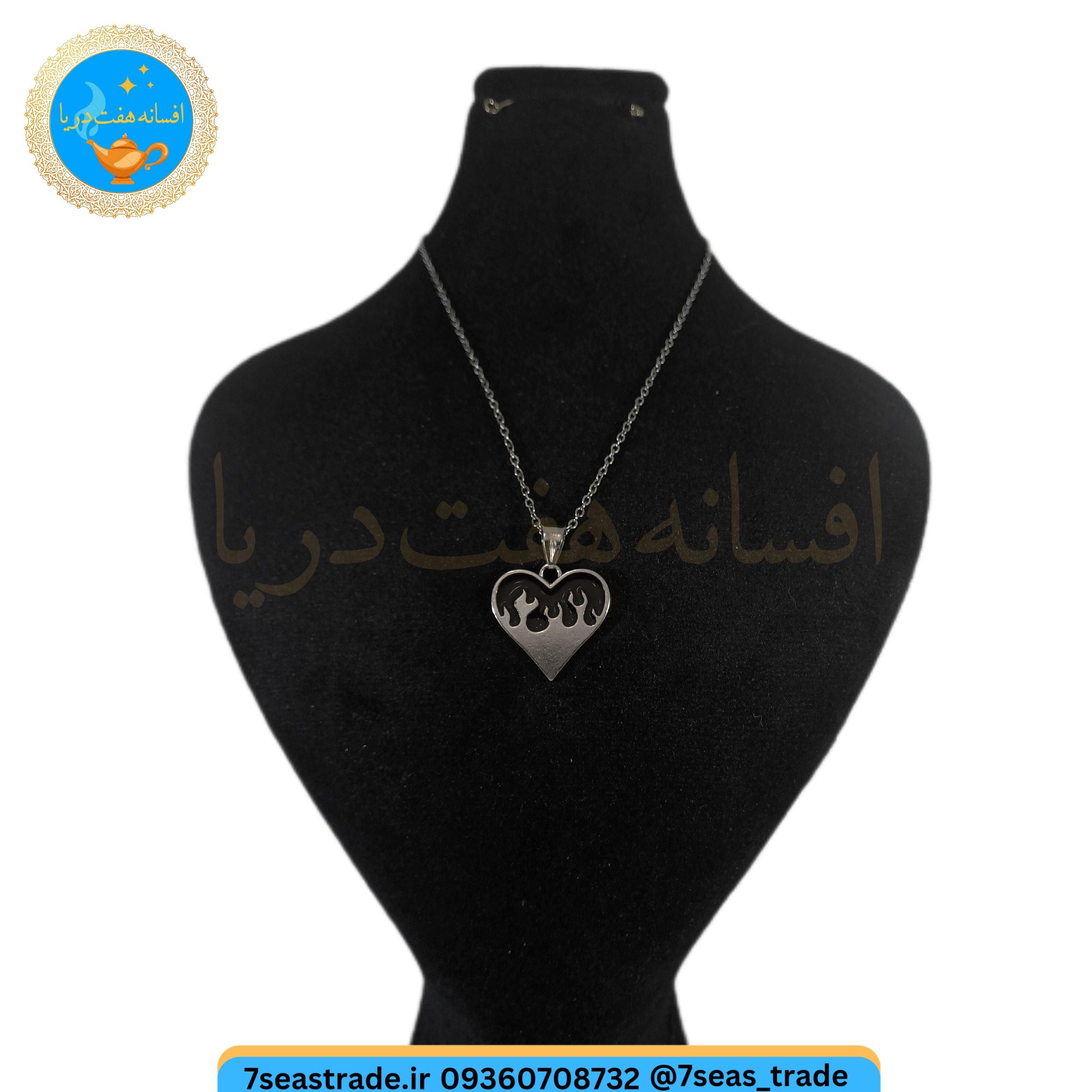 گردنبند فلزی نقره ای مدال استیل طرح قلب آتشین