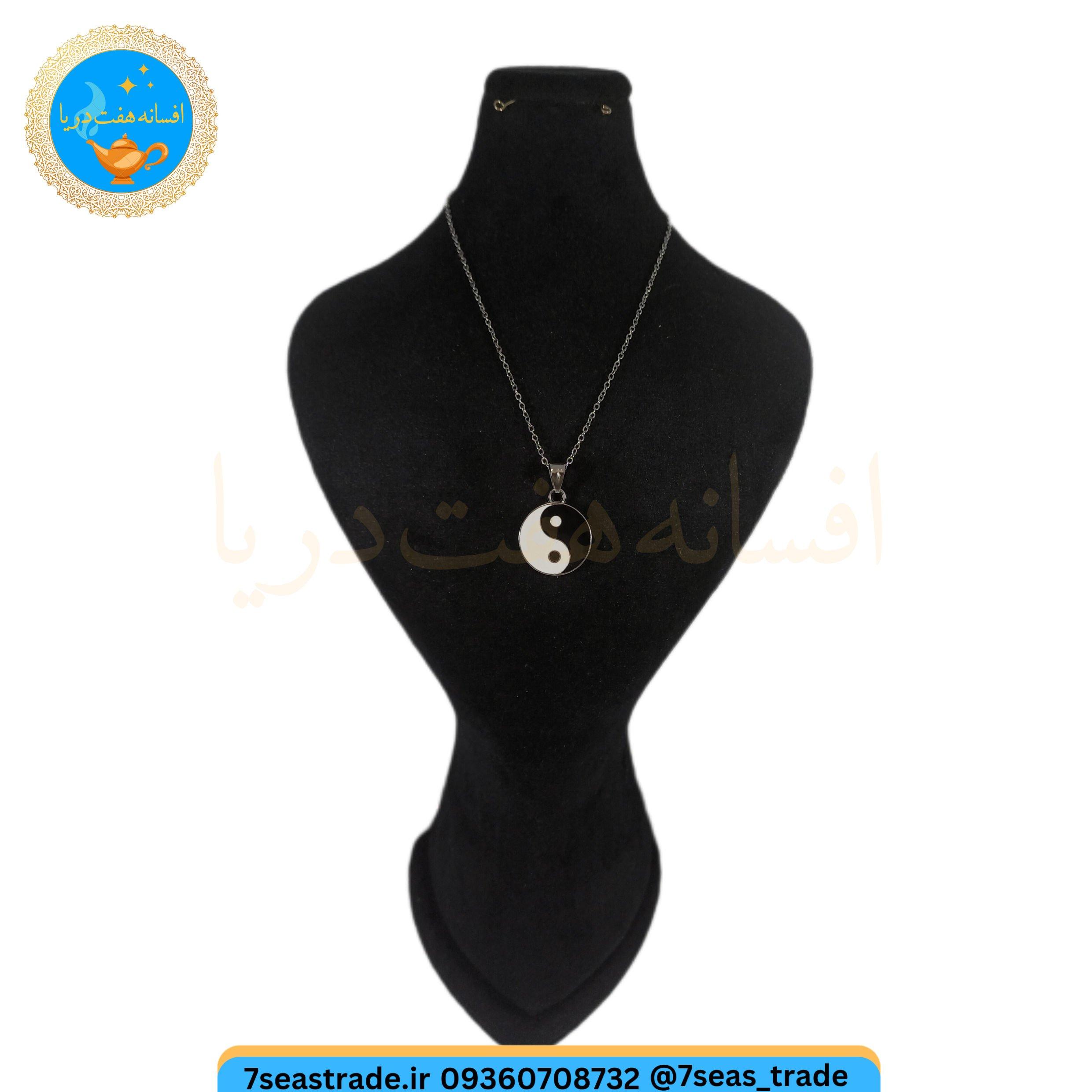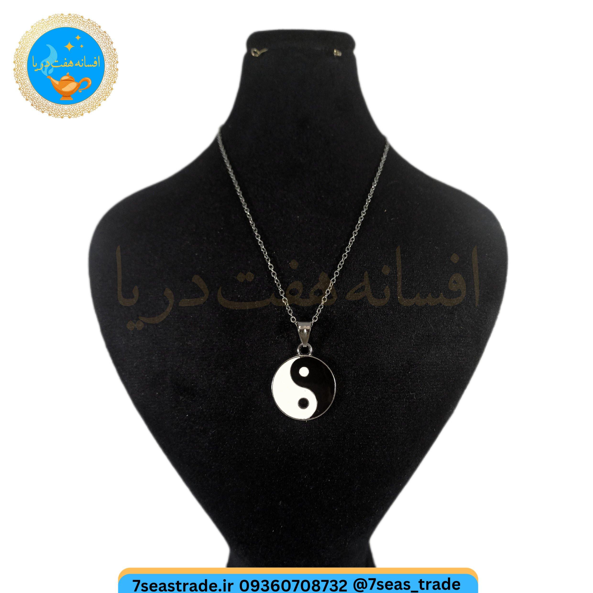 گردنبند فلزی نقره ای مدال استیل طرح ying yang