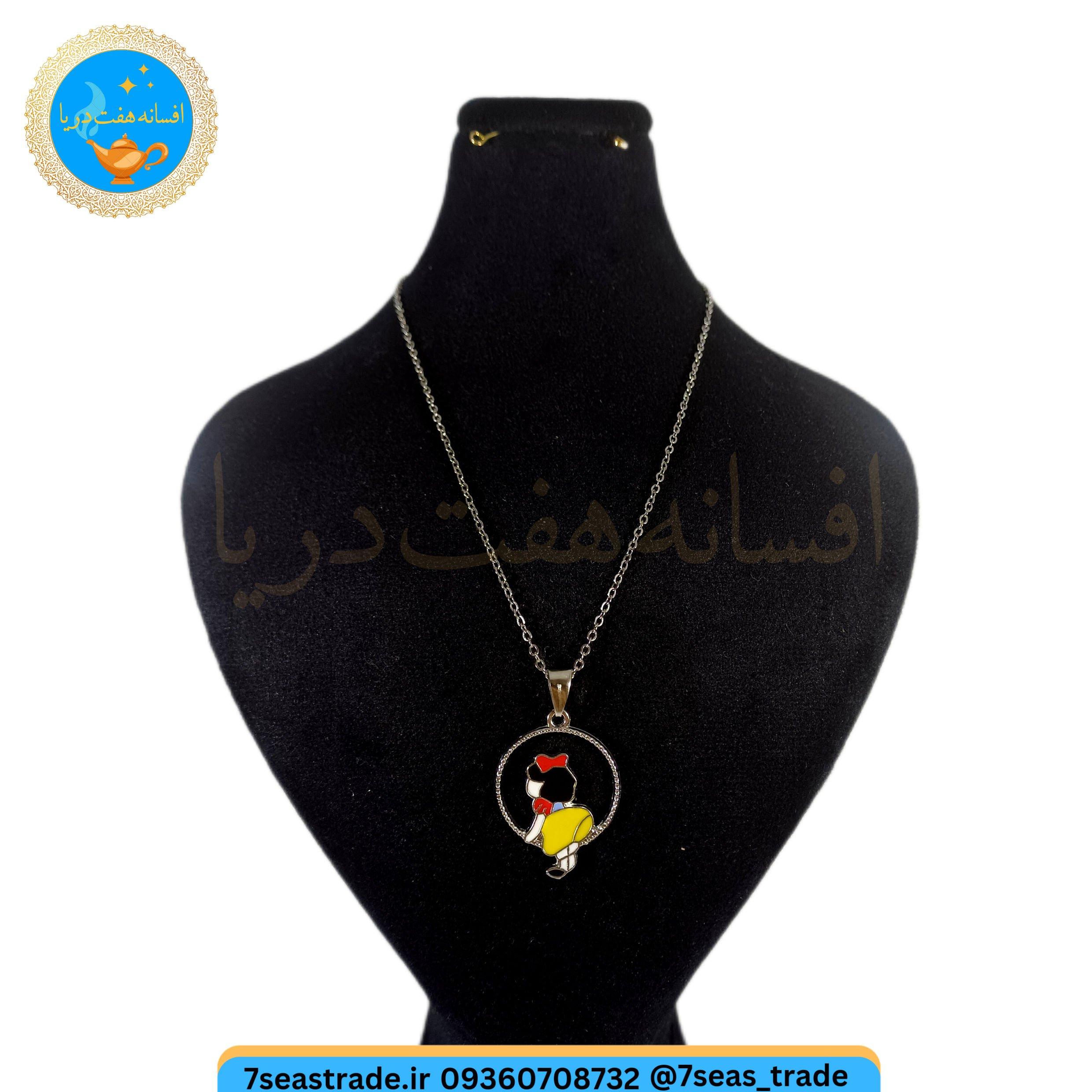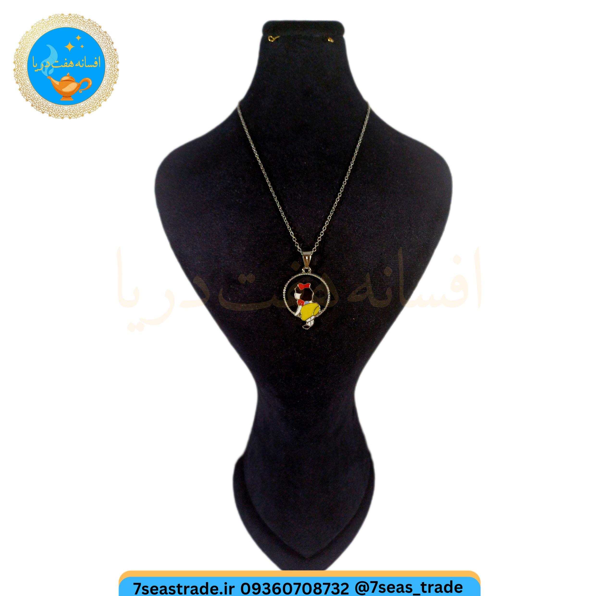 گردنبند فلزی نقره ای مدال استیل فلزی رنگی طرح دختر تاب سوار