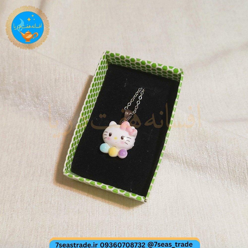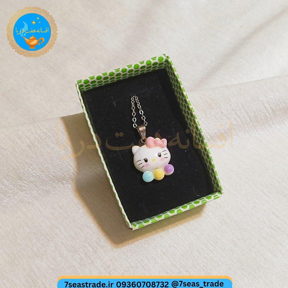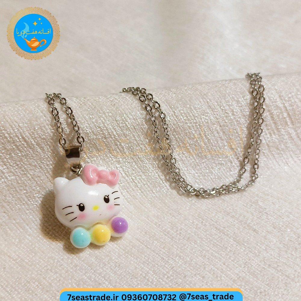 گردنبند فلزی نقره ای مدال شمایل مدل hello katy سفید