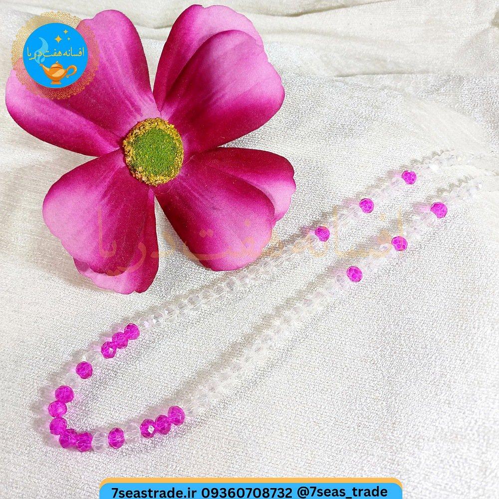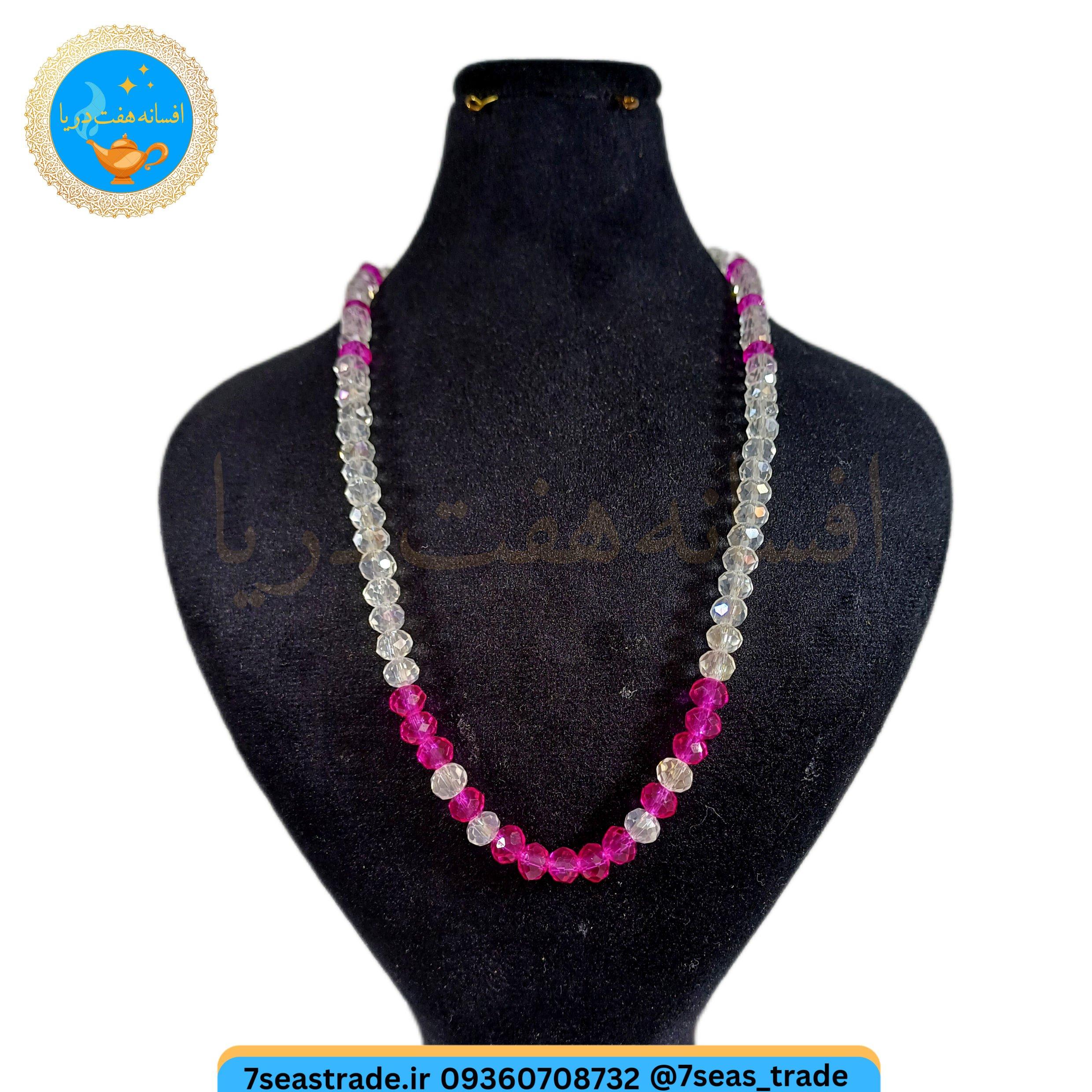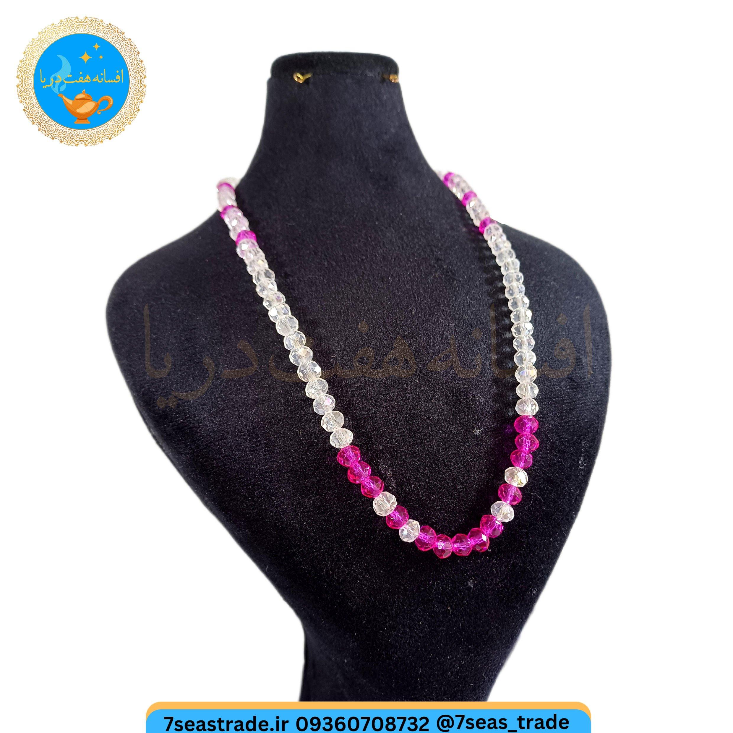 گردنبند دست ساز کریستال بی رنگ ریزه کار کریستال صورتی مدل نسرین